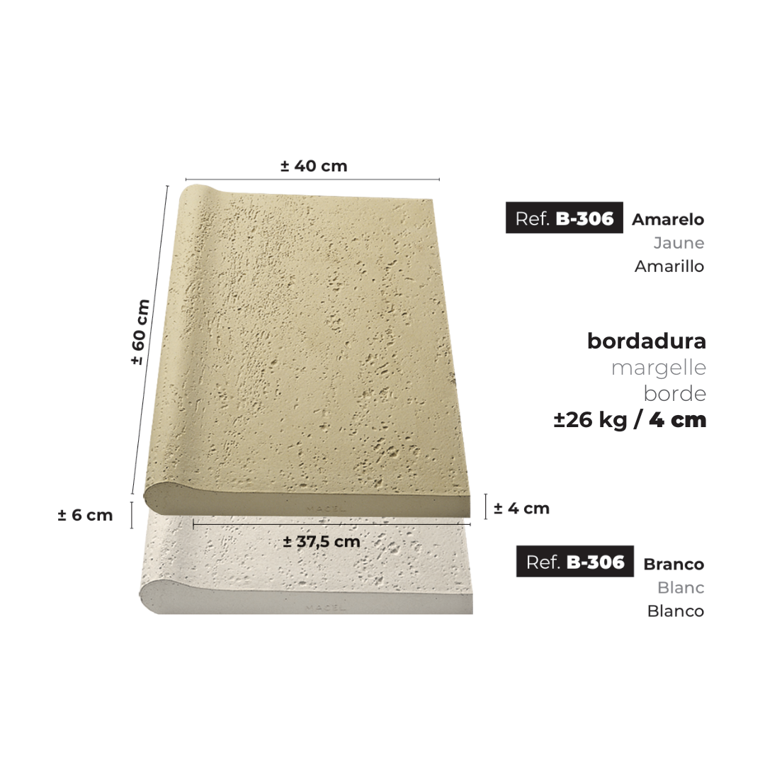 Bordadura para piscinas, 60×40 cm, com acabamento tipo travertino. Resistente, segura e decorativa.
