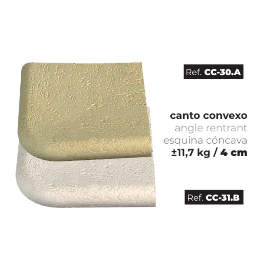 Canto convexo para piscinas com acabamento tipo travertino. Resistente, seguro e decorativo.
