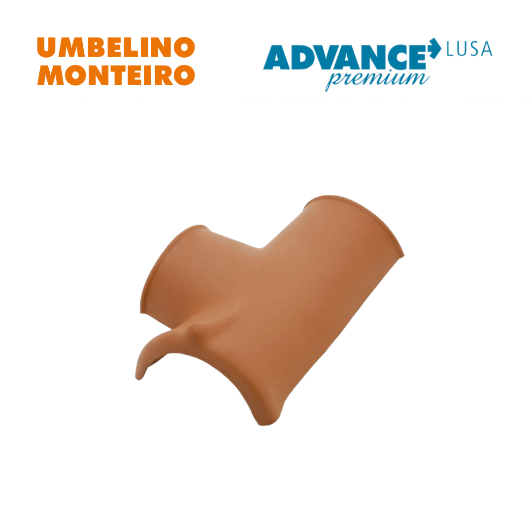 Peça cerâmica especializada na união estanque e no remate profissional de três cumeeiras que formam uma junção em “T” no telhado.