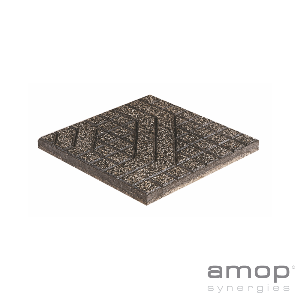 Lajeta de betão para pavimentos exteriores, de superfície imitação de relevo polido, ideal para praças, passeios, caminhos, terraços e pátios. RE-CYCLE – Mosaico Hidráulico com incorporação de material reciclado.