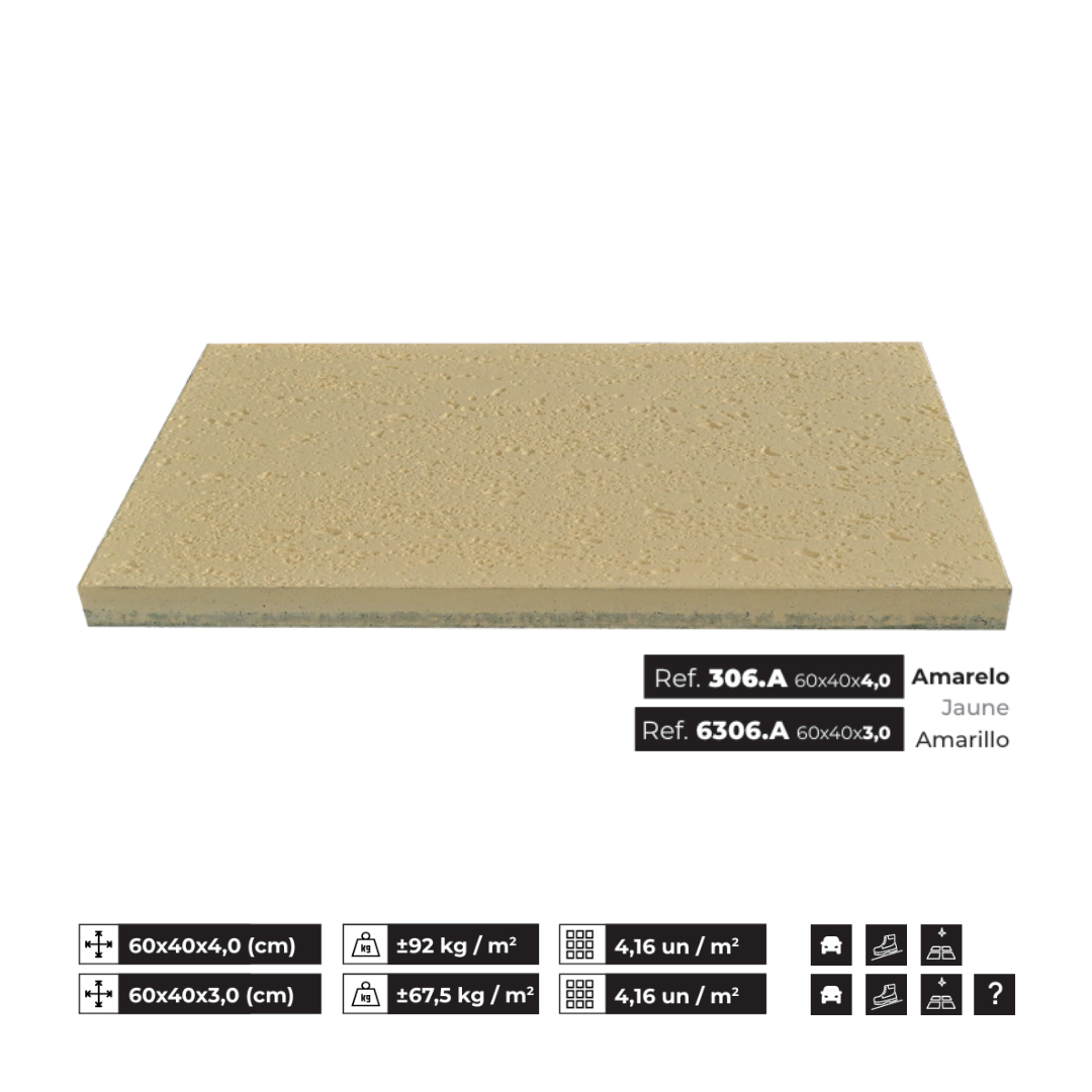 Placas de betão texturadas, resistentes e duráveis, ideais para pavimentos exteriores como passeios e jardins.