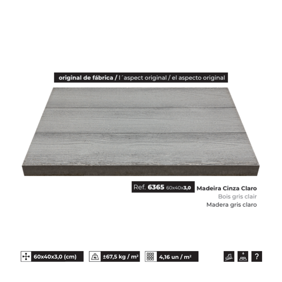 Placa tipo “Madeira Três Tábuas”, Cinza Claro (Ref.:P30-6365)