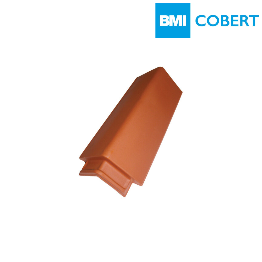Peça de cerâmica para o remate lateral. Não só gera uma estética “bem acabada” como também protege a área contra a entrada de vento e de água. É colocado na empena da cobertura como guarda fogo, evitando as infiltrações de água pelas fissuras da argamassa. De certa forma substitui os remates laterais....